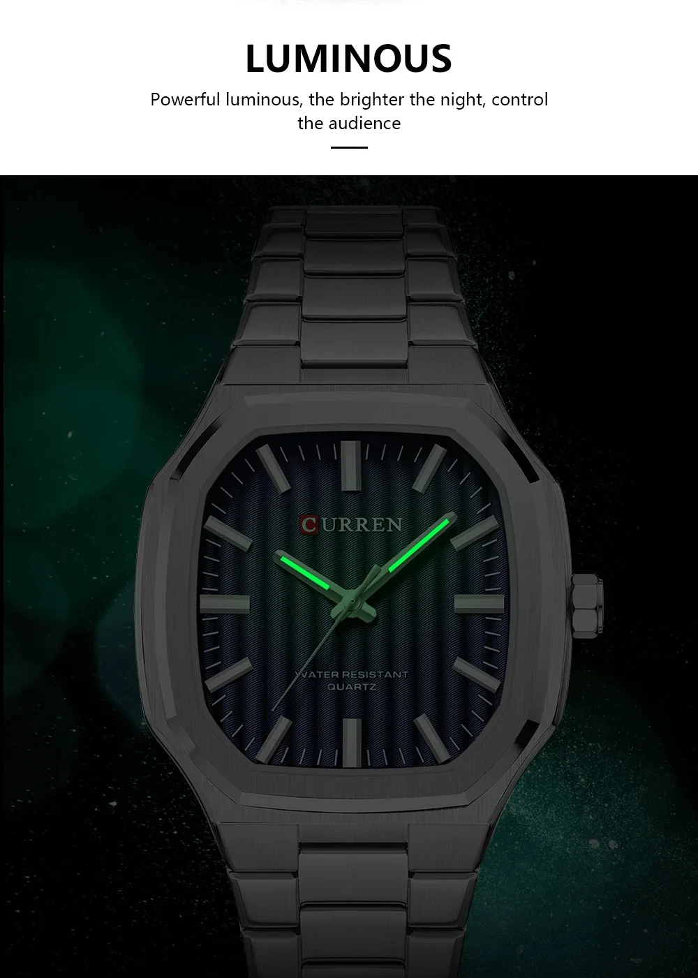 Attractive watchmaking technology, golden section lines show a three-dimensional sense of fashion, feel the touch of metal texture and tight machinery on the soul, and break through the routine to show the unique charm of men.